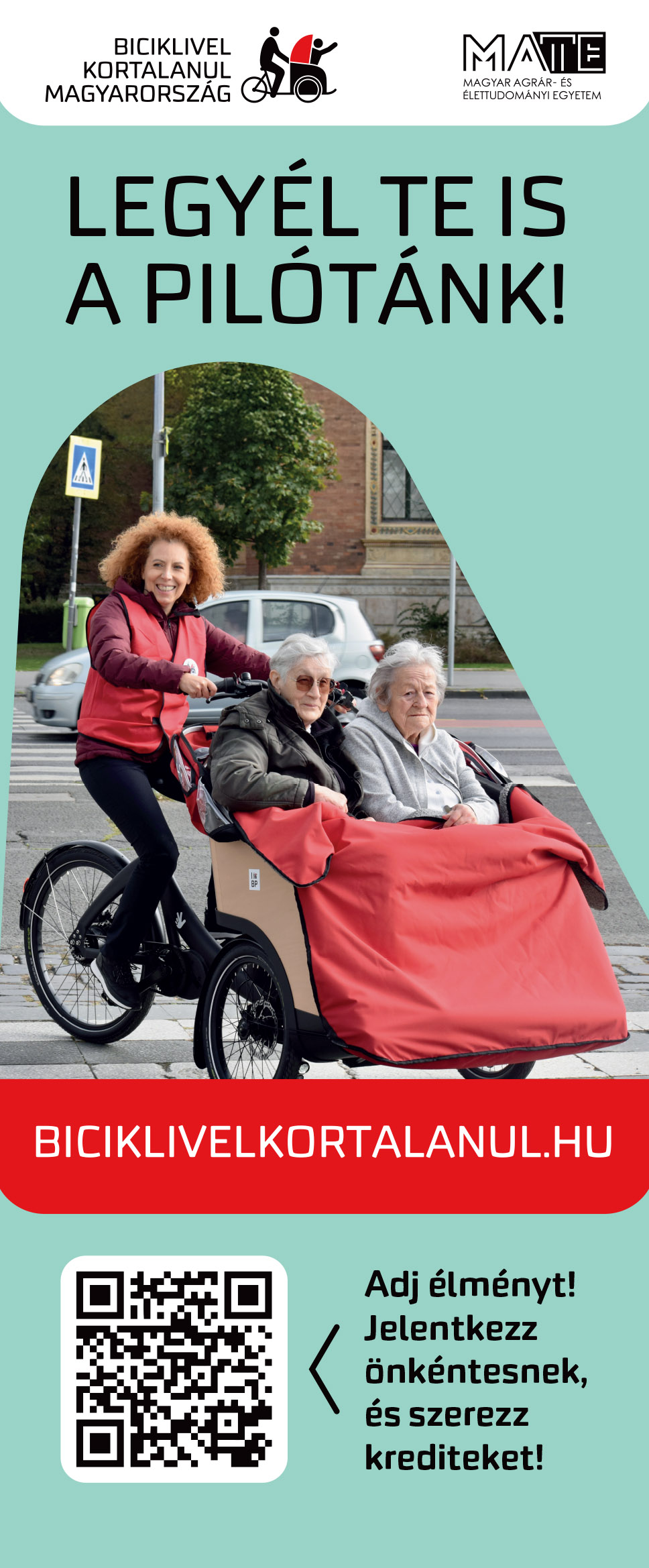 A Cycling Without Age (Biciklivel Kortalanul) egy nemzetközi kezdeményezés, amely az idősek számára biztosítja a szabadság és a kapcsolódás élményét – önkéntes pilóták által hajtott, különleges riksák segítségével. A program 2026 januárjától a MATE diákjai számára tanulmányi kreditért is teljesíthető!